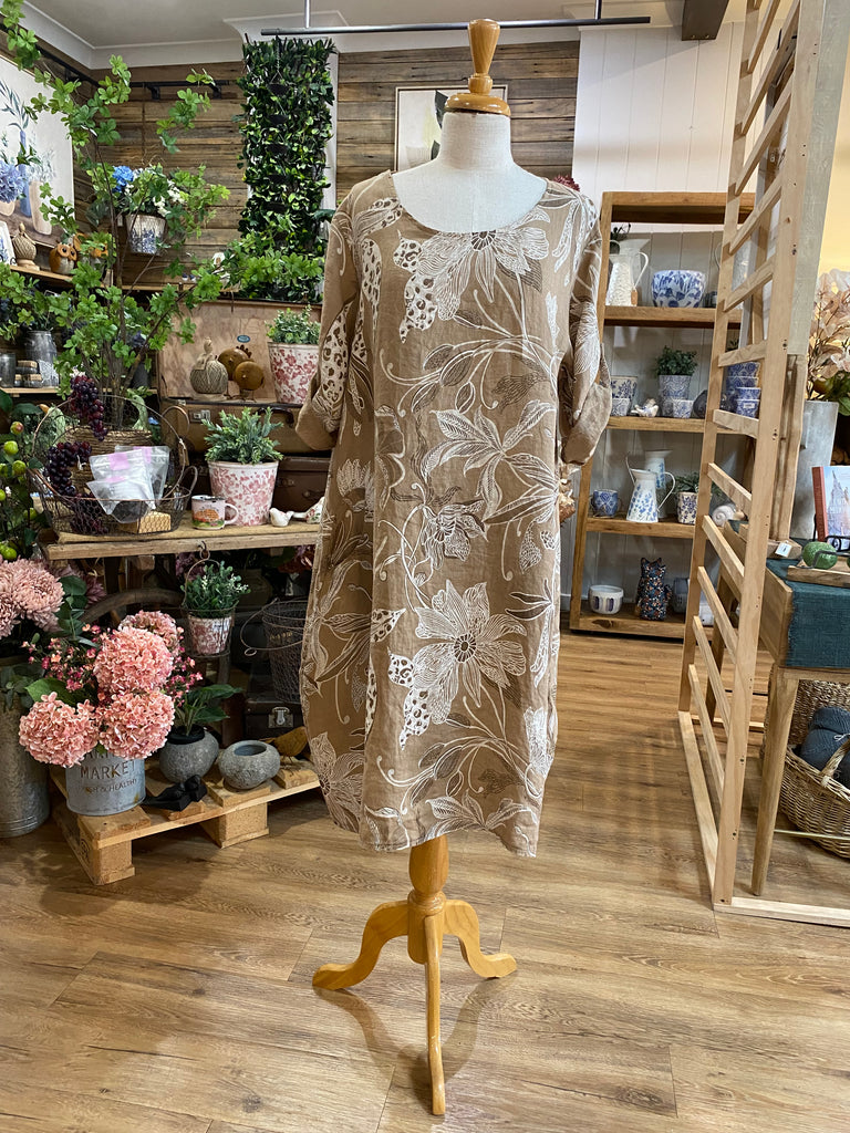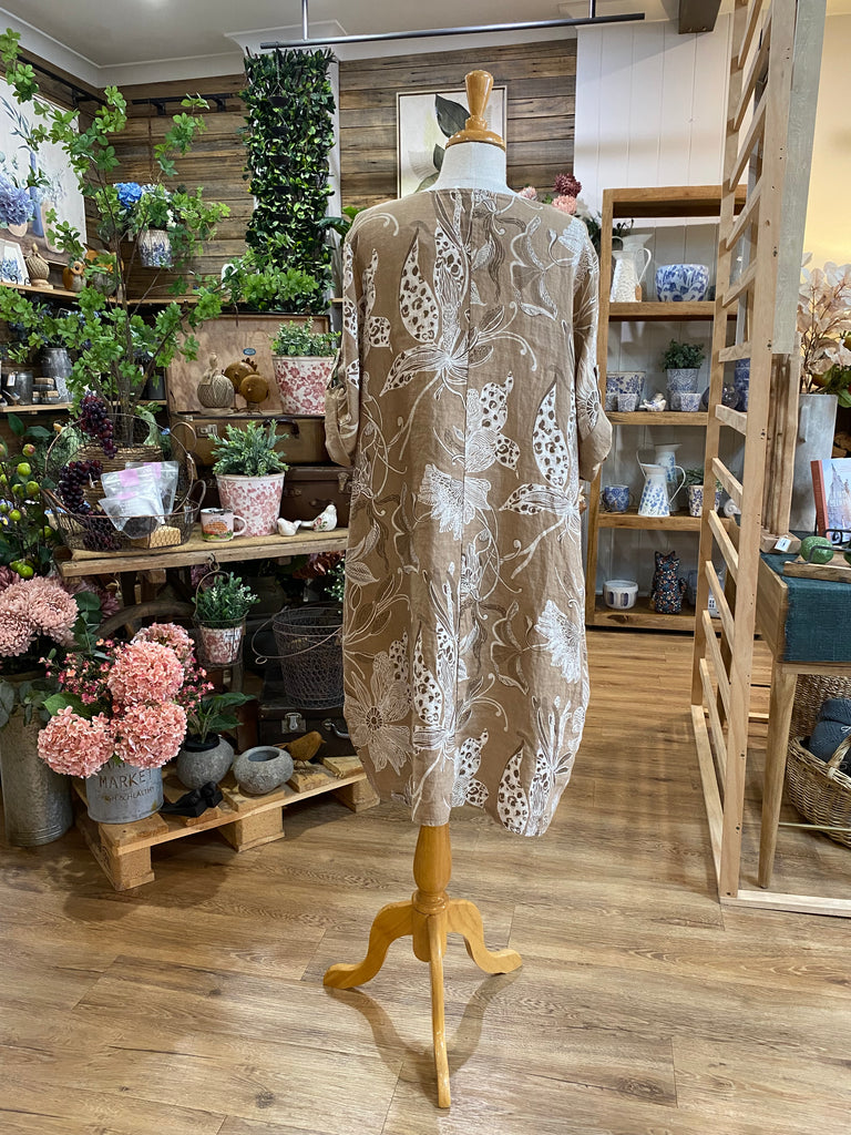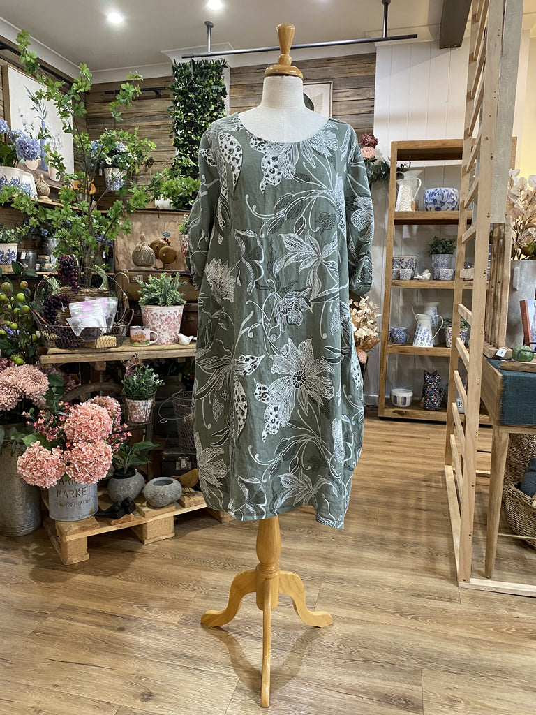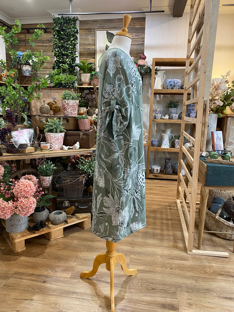Zita features a unique botanical print and button-up sleeve; 3 colour options. |